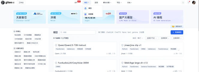 Gitee AI 是開源中國最新推出的針對 AI 應用場景的開源平臺:基于 Gitee 多年在 Git 代碼和 LFS 大文件托管方面的技術積累,為用戶提供了快速、穩定的模型托管服務,讓開發者輕松地分享和下載開源模型、數據集和 AI 應用。