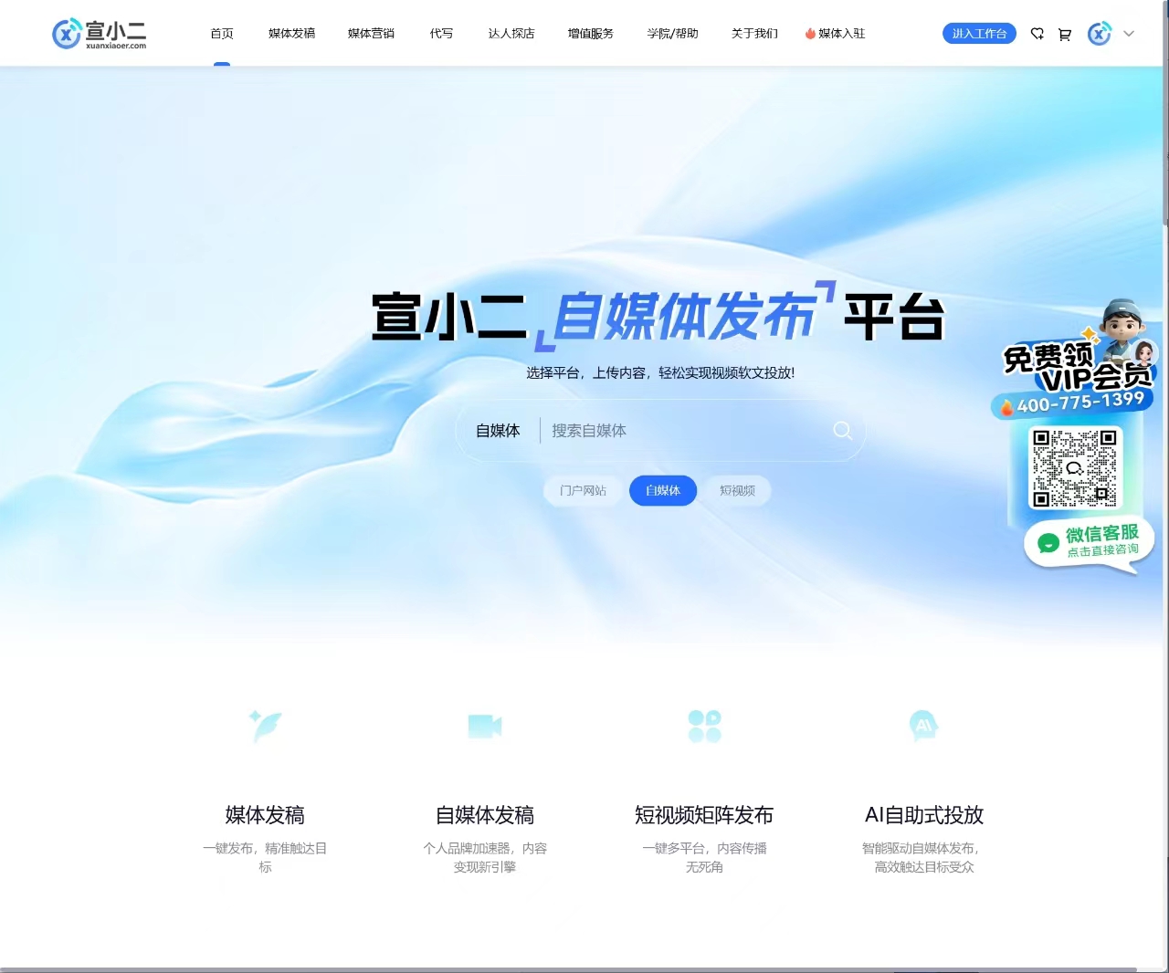 宣小二媒體發稿平臺是一家基于AI技術的企業自助式投放平臺,專注于為企業提供高效的新聞發稿、自媒體推廣和短視頻矩陣發布服務。平臺隸屬于上合雍鼎(廈門)傳媒有限公司,整合了豐富的媒體資源、自媒體博主和短視頻達人,致力于幫助企業提升品牌曝光度、增強市場競爭力,同時為自媒體創作者提供內容變現和成長支持。